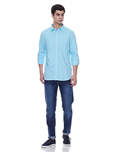 Take a fashionable walk to casual bash with this stylish solid Light Blue shirt featuring semi cutaway collar, full sleeves, one chest pocket and slim fit. Coordinate this shirt with casual chinos and loafers to put your best foot forward. Made of 99% cotton 1% polyester model wears a size m and his height is 6’1″.
