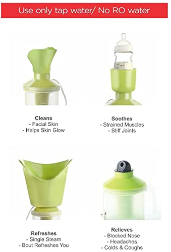 Design – Steam vaporizer is designed in a unique way, made by plastic body, which has to be shock free and light. Use only Tap Water Do not use RO/Filter water as it stops the steam generation process. NOTE: You may experience slight order of burning plastic due to heating and settling of virgin plastic. Hence it is highly recommended to wash the vaporizer with lukewarm water before first use.