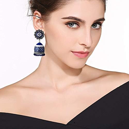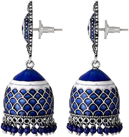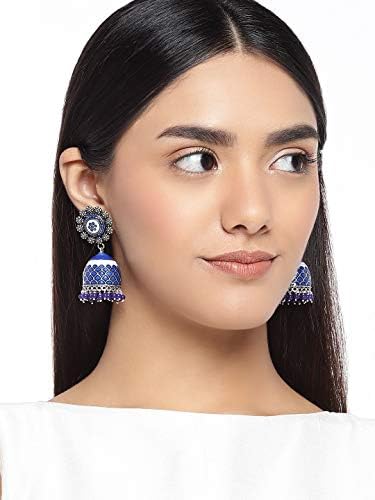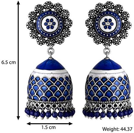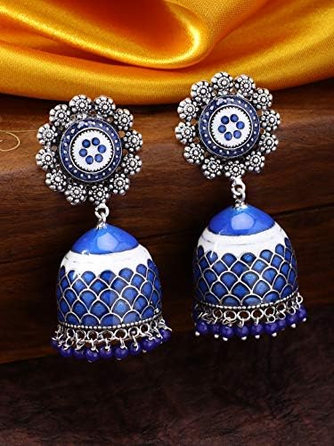 Peora Oxidised Silver Plated Enamel Meenakari Handmade Jhumki Jhumka Earrings for Women Girls Indian Antique Ethnic Traditional Jewellery