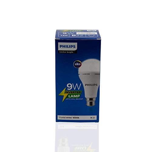 Philips Inverter bulb is a 9 Watt Rechargeable bulb, best for emergency situations of power cuts, offering cool daylight (Color temperature: 6500k)