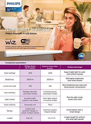 Introducting a superior 24W Smart LED Batten that delivers 2600 lumens. Powered by our patented WiZ technology, choose between 64,000 shades of White along with multiple pre-set modes. By giving you more ways to control, you’re spoilt for choice when it comes to how you’d like to interact with light.