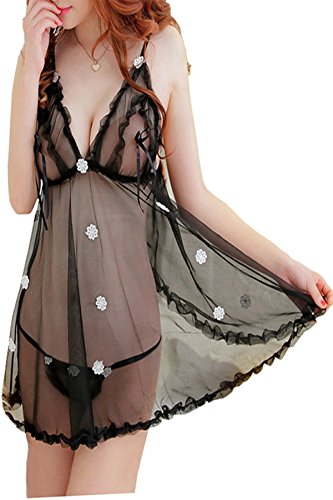PHWOAR Mini Babydoll Nightwear Sleepwear Lingerie Dress for Women with G-String Panty