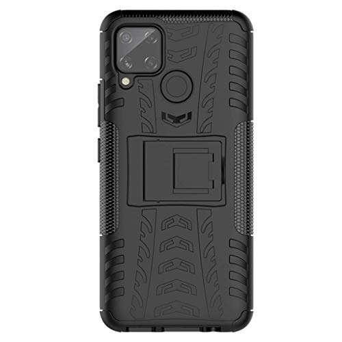 Tough Armor case for Realme C15 2019. The combination of the TPU and PC can cushion the shock to protect your phone.The case allows for easy access to the all ports and buttons through precisely aligned cut-outs. Flexible wrap-around design makes it easy snap on and off without stretching the case. It features a convenient kickstand, which flips out anytime you need it.