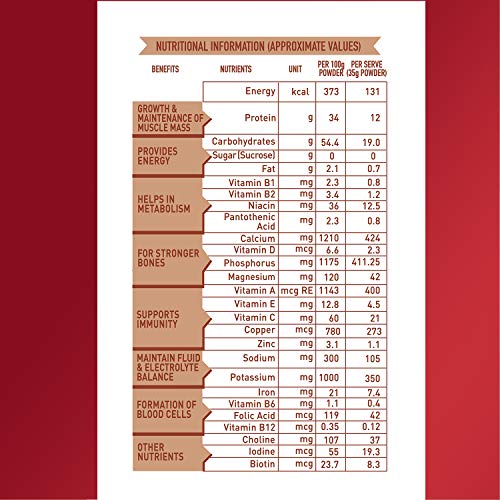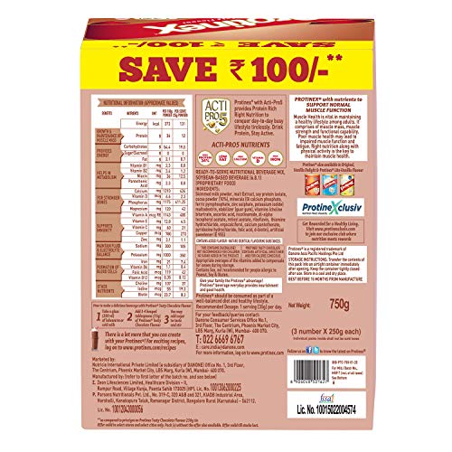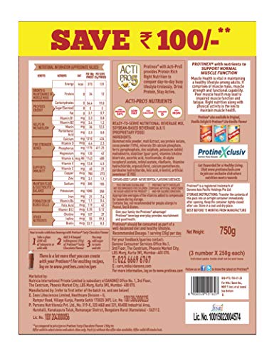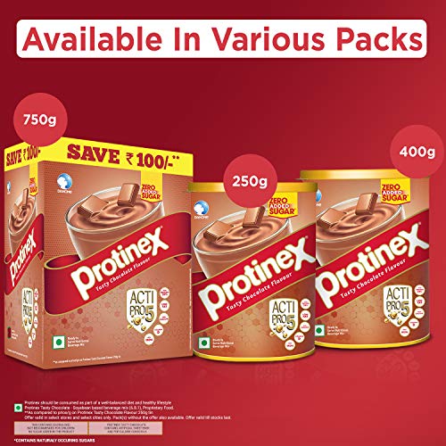Protinex Tasty Chocolate is a vegetarian ready to serve beverage mix that helps bridge the gap of nutrients from diet of Indian Adults. Protinex Tasty Chocolate is an adult nutritional drink mix that is clinically proven to provide 34% higher immuno boosters that help build immunity# 1,2. Protinex contains 22 essential vitamins and minerals including 10 immuno nutrients³ that help build immunity, build strength, and provide energy. Protinex consists of nutrients that help in building bone strength, growth & maintenance of muscle mass, improving metabolism, formation of blood cells, and maintaining fluid & electrolyte balance**. Available in chocolate flavor, Protinex easily makes its place in your everyday diet plan, and with zero added sugar* and low fat, it is suitable for daily consumption. It can be taken with milk or water.