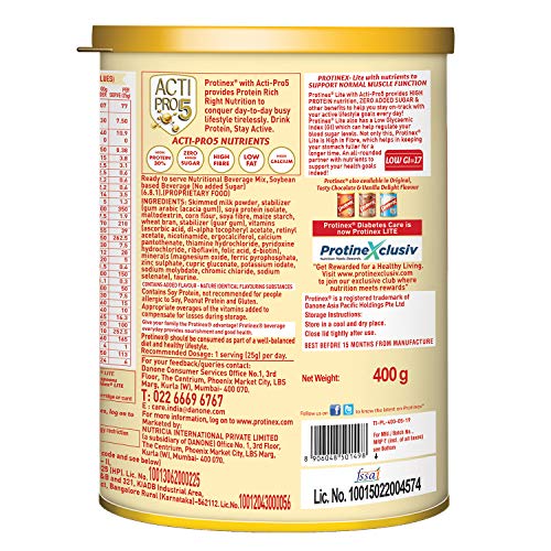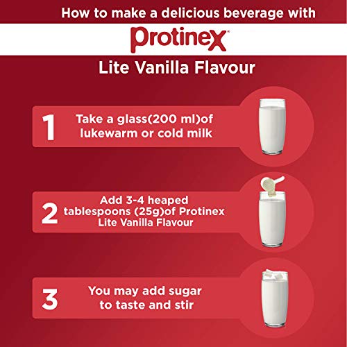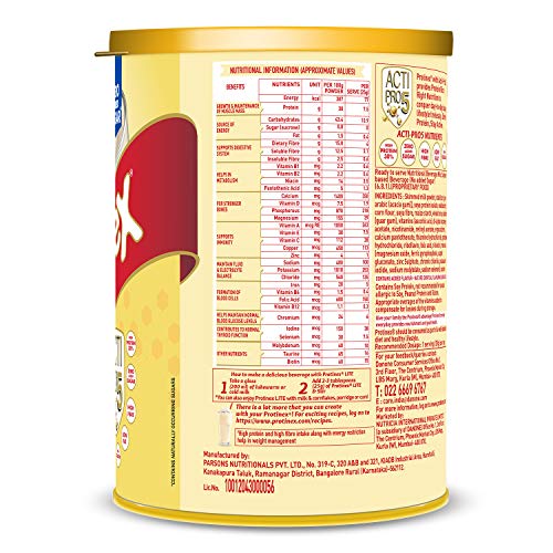 Protinex Lite is a ready to serve beverage mix that helps meet the nutrient requirements of Indian Adults. Protinex contains 26 essential vitamins and minerals including 11 immuno nutrients³ ; that support immunity, build strength, and provide energy. With high fiber, high protein, and low GI (Glycemic Index), Protinex Lite is a perfect choice for those who are looking for healthy & well- balanced lifestyle & weight management**. Available in Vanilla Flavor, it’s an ideal drink with zero added sugar* that easily makes it place in your everyday diet plan.