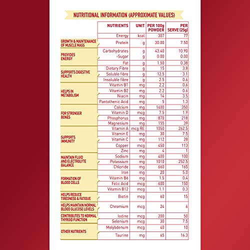 Protinex has Protein, Calcium, Vitamin B & Minerals like Iron, Sodium, Potassium that support growth & maintenance of muscle mass, strengthen bones, improve metabolism, maintain fluid & electrolyte balance, and contribute to blood cell formation