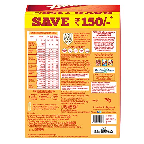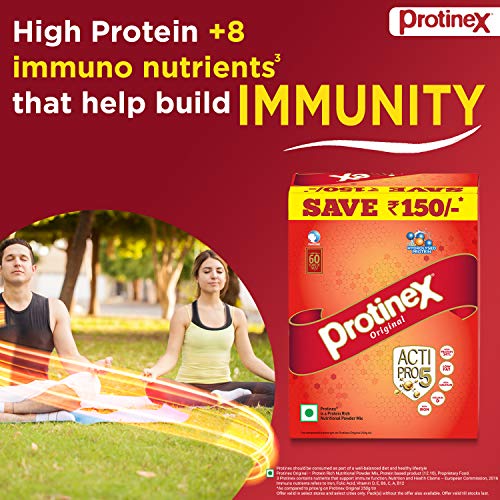 Protinex Original is a ready to serve beverage mix that helps meet the nutrient requirements of Indian Adults. Protinex Original contains 17 essential vitamins and minerals including 8 immuno nutrients³; that support immunity, build strength, and provide energy. Made with a unique hydrolyzed protein formulation, which is easy to digest and helps in 50% faster absorption of Protein⁵. Protinex consists of nutrients that help in building bone strength, growth & maintenance of muscle mass, metabolism & formation of blood cells**. Protinex Original easily makes its place in your everyday diet plan, and it is suitable for daily consumption. It can be taken with milk or water.