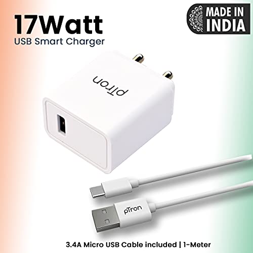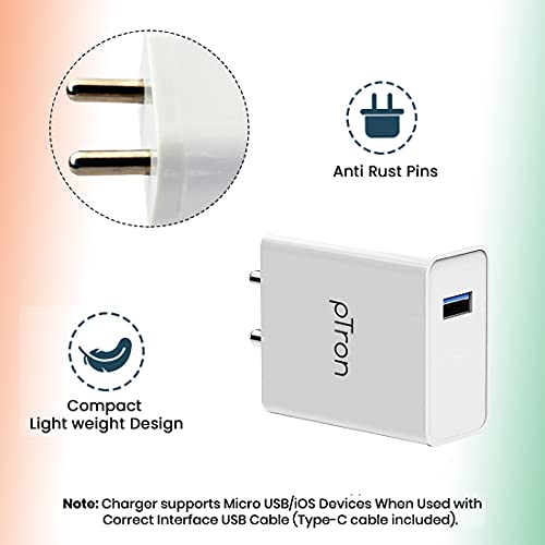 Compact & Lightweight: pTron Volta Plus 17W (3.4A) USB charger adapter allows charging at home or in the office via USB cable connection.