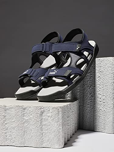 Look stylish with this pair of uber cool peacoat casual sandals from Puma. It features a PU upper that provides comfort and enhances the overall look. The slip-resistant rubber sole ensures great traction on any surface. To enhance your look, this pair features a round shaped tip. Flaunt these casual sandals with a pair of jeans and a T-shirt to make a style statement.