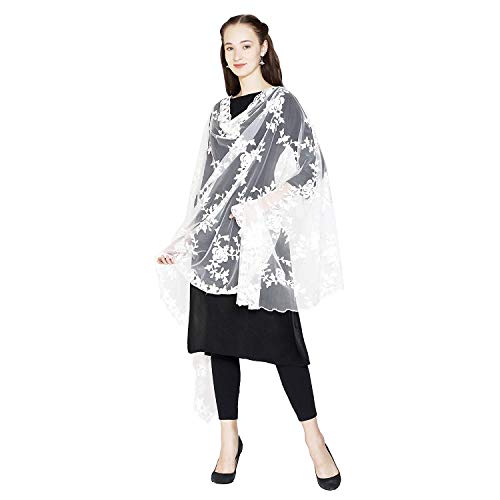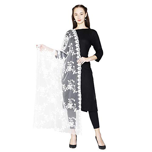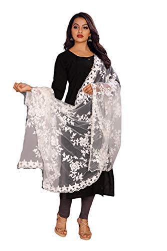 Color : white | material of dupatta: nylon mono net with heavy pure cotton thread aari embroidery | length of dupatta : 2.25 x 1.00 meter | care instructions : gentle wash, mild iron and wash dark colors separately