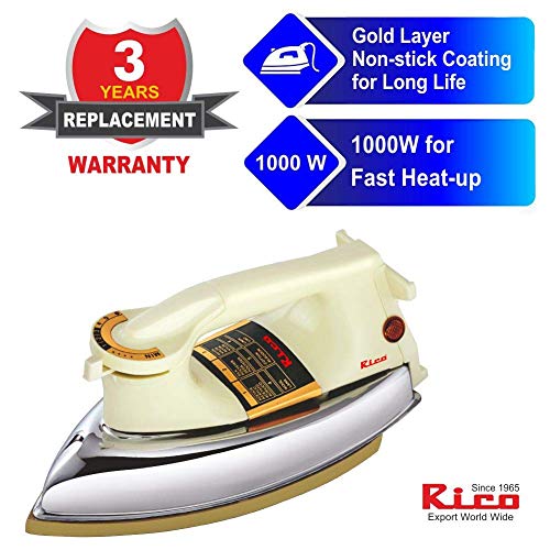 Instant Quick Heat : Japanese Quick Heat Technology from “0” TO 250′ CELSIUS in 1 Minute. Double Protection with Thermostat and Fuse Over Heat Protection. Weight : 2 Kg,1000 W Power Consumption & Heavy Weight Iron. Easily Iron Tough Jeans and Hard Linen Fabric instantly.