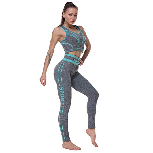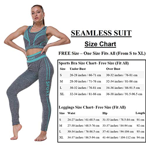 RNG EKO GREEN Seamless 2 Piece Suit (Sports Bra + Leggings) Universal Free Size Fitness/Gym/Yoga/Sports Wear Set for Women – (Grey + Blue)