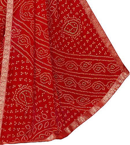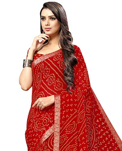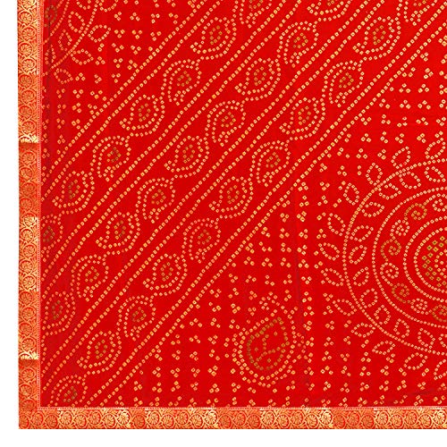 Bandhani Bandhej Chiffon Printed Saree With Weaving Border And Blouse Material