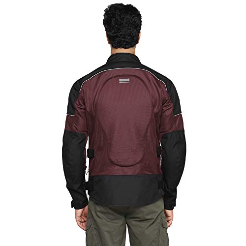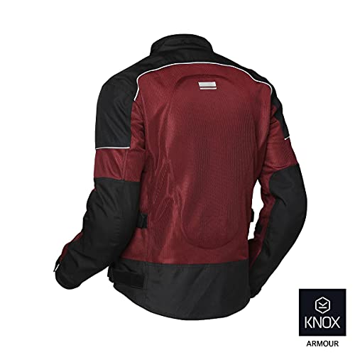 Construction: 90% of jacket is high abrasion resistant Polyester Mesh and 10% 600 D polyester; Abrasion Resistant: Premium high abrasion resistant mesh with high air permeability; Layers : 1 ; Impact Protection: Knox flexiform Level 1 armors for shoulder and elbow ; Perforated Eva Foa at the back; Fit: Regular ; Ventilation – 90% mesh makes it fully ventilated Adjustment tabs on cuffs, waist, biceps and forearms; Reflective with leather applique branding at chest;