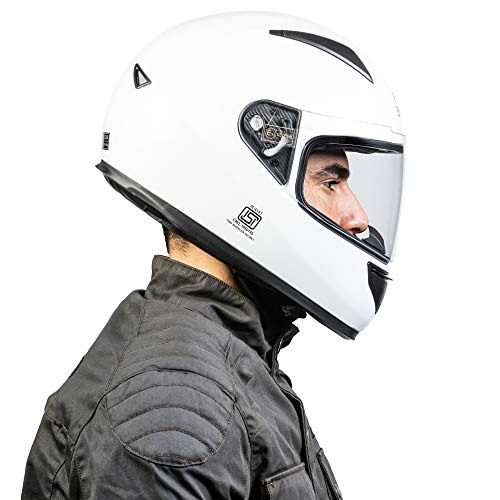Design: Full face with visor. Shell Construction: Outer shell made of high impact grade thermoplastic shell. Impact Protection: High density 3 Piece (Head, Cheek, and Chin) EPS -Expanded PolyStyrene liner for better impact absorption. Comfort: Comfort liner made of a combination of knit, mesh, and polyester. Lock: Micrometric lock with D-ring. Weight: 1350 +/-50