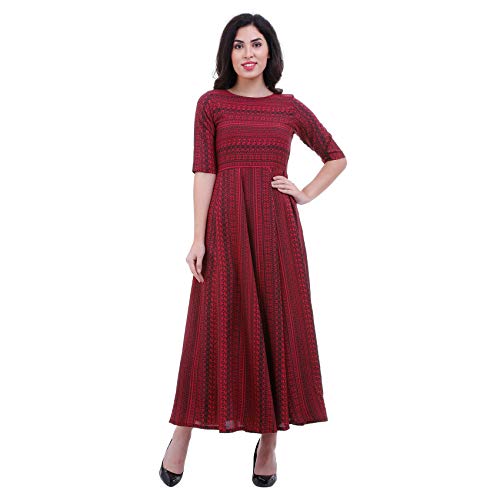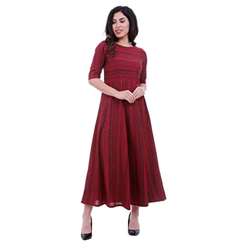 Features: Fit And Flare, Printed, Casual, Maxi, A-Line, Round Neck, Half Sleeve