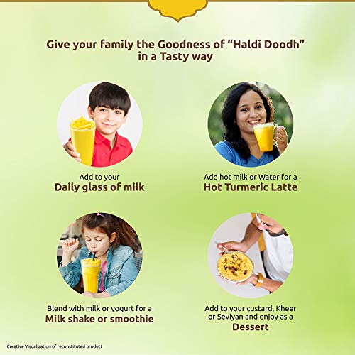 You can enjoy this healthy drink mix in any tasty form, A hot turmeric latte, a milk-shake, a smoothie or in a kheer. Add it to kids daily glass of milk to make it healthy and tasty
