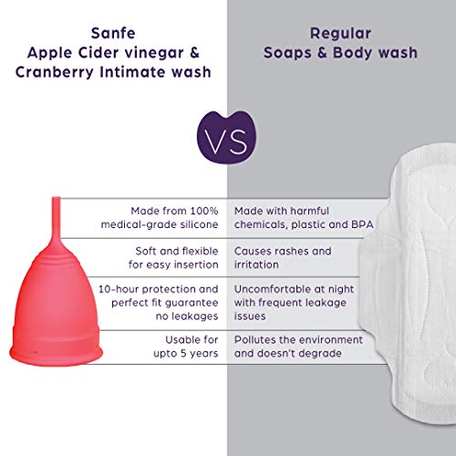 Medical grade silicone sanfe large size cups for women are made with 100% reusable flexible medical-grade silicone, approved by experts. Sanfe cups come with a breathable cotton pouch to ensure regular airflow when stored and a proper instruction manual to guide you step-by-step on how to use a menstrual cup.; Color: Pink; Package Content: 1 Reusable menstrual cup; Target Audience: Women
