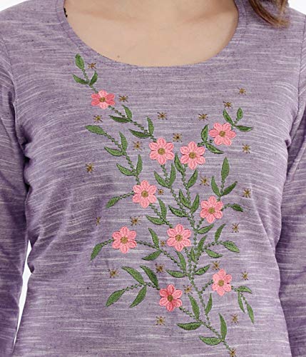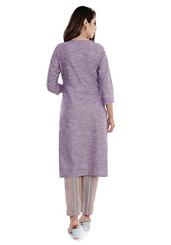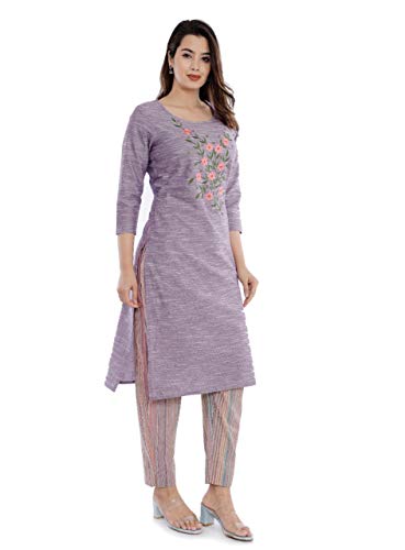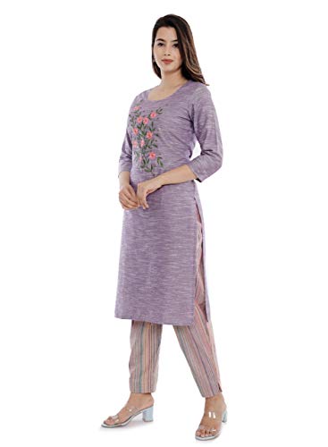 Sanganeri Kurti Womens Cotton Embroidred Kurta With Printed Pant Set (Purple)
