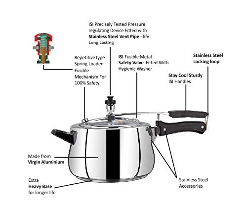 High grade aluminium silicon gasket with stainless steel fasteners will provide a sturdy support and body of the cooker. Its strong body will make it go on for a long time and will provide you with good service. Aluminum tends to heat up quickly so the food gets cooked rapidly. Use this pressure cooker to prepare a variety of dishes including family-favorite recipes at dinner or lunch options in an instant.