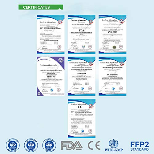 CERTIFICATION :: CE, FDA, ISO, GMP, FFP2 Certified, this is a 100% genuine product on Amazon, we have uploaded our all the certificate on Amazon.