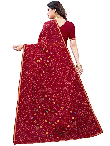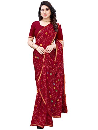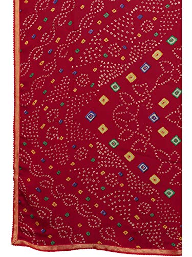 Satrani Women’s Bandhani Printed Laced Work Chiffon Saree With Blouse Piece