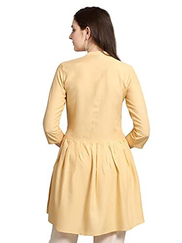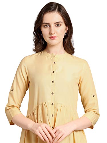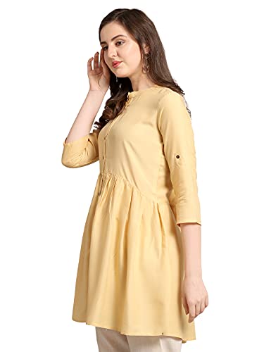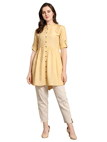 Selvia Rayon Solid Falred Tunic with Roll-up Sleeve