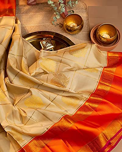 Bold and beautiful, this Kanchipuram KING & QUEEN ATTRACTIVE silk Royal Bottle white color brocade saree is all about impactful presence.