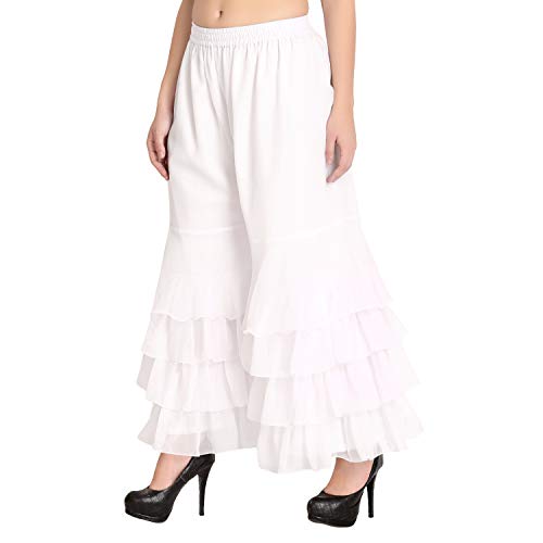 Elasticated Band Easy for the waist size 28 inch to 42 inches. Trendy and stylish georgette sharara. This sharara makes you fashionable and comfortable