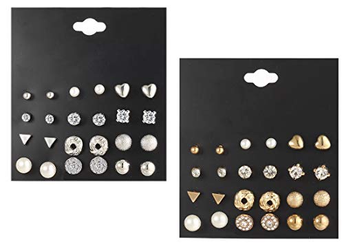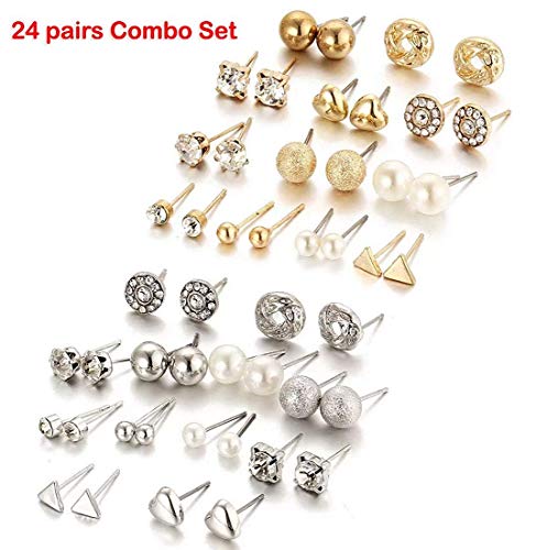 12 pairs gold plated + 12 pairs silver plated earrings combo set