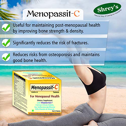 Menopassit-C is a Calcium supplement specifically for prevention of osteoporosis. It helps to maintain the optimal bone health and done density. It contains Vitamin K2-7, Calcium, Magnesium Vitamin D3 and more. Menopassit-C increases the bone calcium retention, inhibits bone breakdown, and promotes activity of the bone building cell. Menopassit-C also increases the calcium absorption in the body, an important consideration for pre and post-menopausal women, who are losing critical bone mass that increase their risk for osteoporosis and fracture.