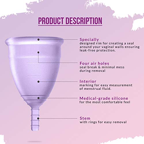 Leak proof body aligned design: the ultra soft mentrual cup is flexible and the spill proof rim fits your body’s curves ensuring leak-free protection. No leaks, no spills