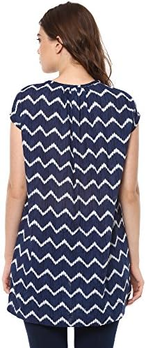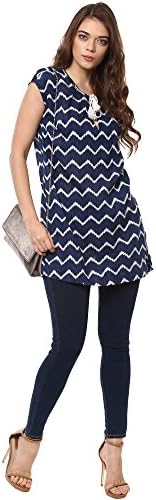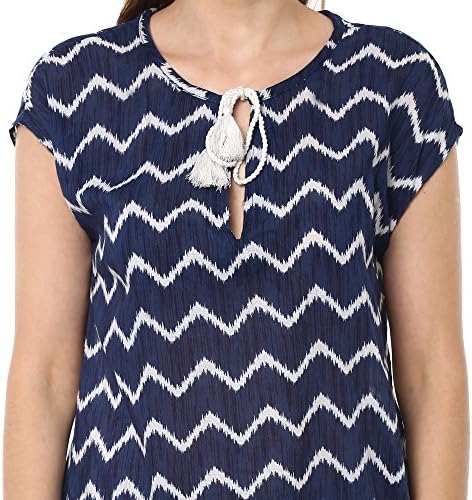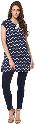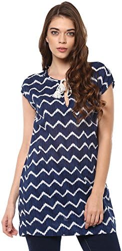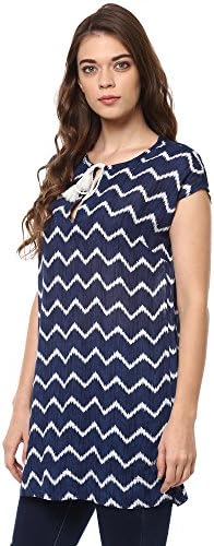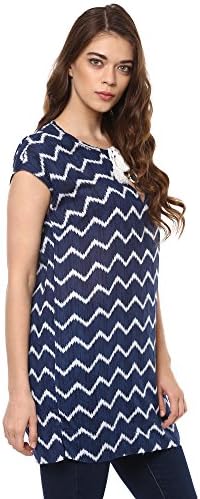 Women’s/Girls Thigh Length Side Slits Geometric Printed Long Line Cotton Blue Top(plus size and maternity w