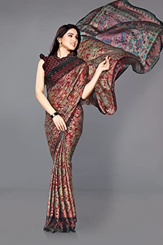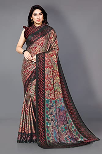 Beautifully designed Indian Traditional ethnic regular festive wear sarees made of high-quality fabric chiffon which have floral print all over, kalamkari palav design with contrast chevron border-blouse pattern. SOURBH Fashion brings you a nice addition to the wardrobe of every fashionable female, who wants to look glamorous and distinct.