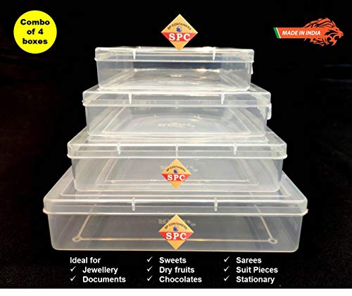 These are multipurpose plastic boxes which can be used to store just about anything like medicines, pills, jewellery, stationery items, buttons, socks, handkerchiefs, undergarments, clothes etc. The boxes are sturdy and durable. The boxes are transparent so there is no need to open the box to view the contents inside.