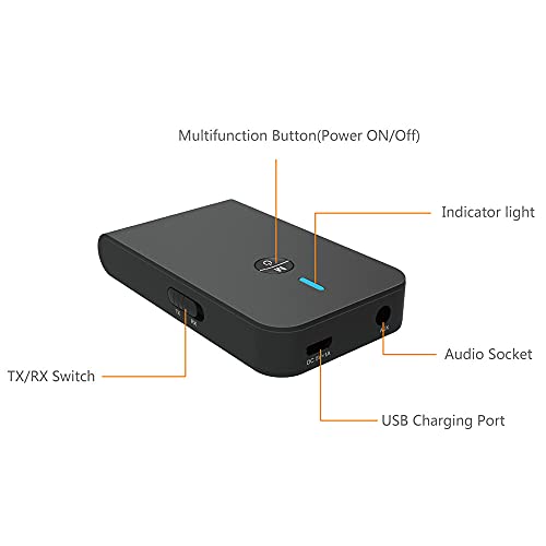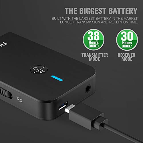 Bluetooth 5.0 – Transmitter Receiver 2 in 1 Audio Wireless Adapter Low Latency for Car TV PC Speaker Headphone 3.5MM AuX (Black)