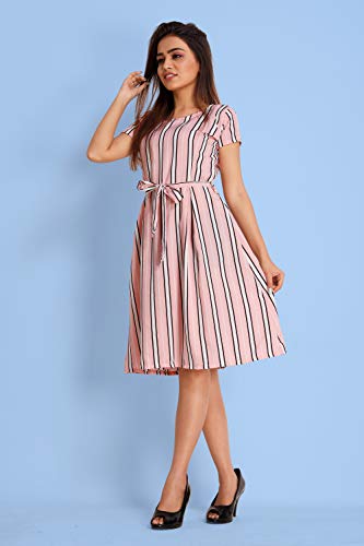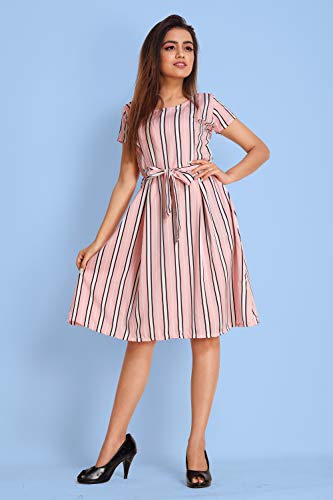 A good quality dress for women. It will give them a classic and trendy look.This is designed as per the latest trends to keep you in sync with high fashion and with wedding and other occasion, it will keep you comfortable all day long. The lovely design forms a substantial feature of this wear. New Crepe Printed Round Neck Beautiful A-line Flared Dress For Girls and Women . We offers you to Attract compliments by this attractive stitched Dress made with fine quality material and Beautiful fabric belt which can be Wear for functions, festivals, parties and even office also.