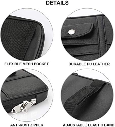1 Extra big pocket+1 Mesh pocket+5 Card holder+1 Glasses clip. Made of high-quality PU leather and stainless zipper, durable and lightweight. Fine leather veins blend perfectly in your car.