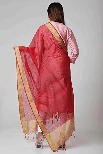 Solid , Full Length Dupatta with Slub all-over texture and Gold Zari border