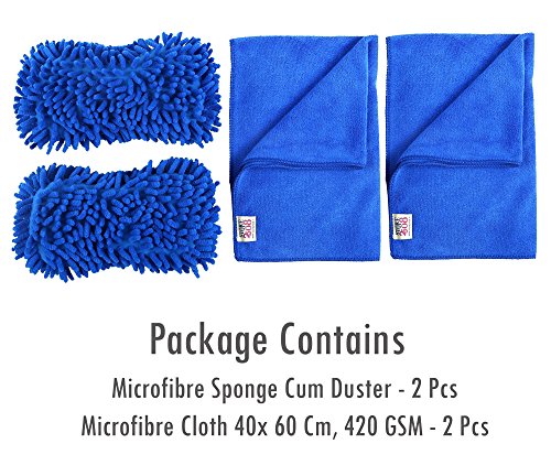 Package Includes – Microfibre Duster Sponge – 2 Pcs, Microfibre Cloth 40 x 60 Cm, 420 GSM – 2 Pcs High quality and super absorbent microfibre cloth & duster. Very Soft – Excellent Absorption – Quick Dry – No Odour – Bacteria Free -Wrinkle Free. Easy to Wash – No Chemicals required – NO BLEACH- Light Weight – Lasts Hundreds of Washes – Economical. Can be used to clean car, furniture, LED TVs, Laptop Screen Other delicate Articles.