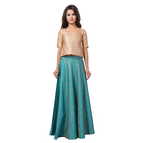 This Is A Very Stylish Maroon Brocade Skirt . The Skirt Is 40″ Long And The Waist Is 28″ Before Stretch And 36″ After Stretch . The Maroon Colour Is Very Versatile And Can Be Worn With Any Blouse , Choli Or Even A Long Kurta . It Is Lined With A Soft Crepe . This Skirt Can Be Worn By Ladies With A Waist From 28 ” Upto 36″ Comfortably. It Is Suitable For Women With A Height Of 5’3″ Upto 5’8″ . The Model Wearing It Is 5’6″ Tall .