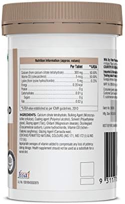 Increased Absorption: Formulated with naturally derived vitamin D3 The Swisse Calcium and Vitamin D tablets contain Lysine, an amino acid that helps in faster absorption of Calcium and promotes absorption and delivery of calcium to the bone. Research shows that Calcium absorption is as important as Calcium consumption