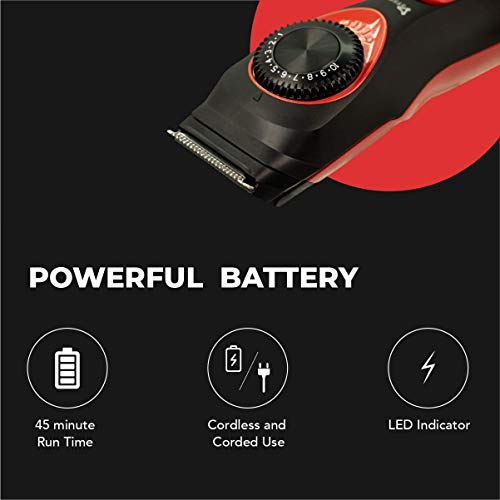 Comes with charging indicator; Turns Red when charging; Cordless trimmer – use anytime, anywhere for up to 45 minutes