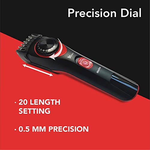0.5mm high precision blades with Beard Trimmer Comb – 20mm lock-in length setting to keep your style versatile; The Trim Dial lets you adjust from 1mm to 10mm; Ideal for trimming neckline, light touch up and edging around ears