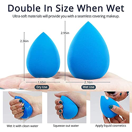 The TECHICON Hydro-activated sponge grows to about twice its size when wet, and absorbs minimal product so your favorite formula lands on your complexionâ??not your sponge. When wet, the super soft material provides an even, smooth blend and bounce. The large, rounded surface area ensures a quick application while the contoured tip offers precision. Beautyblender has chosen to use non-toxic, water-soluble dyes. For this reason, your beauty blender may shed dye for the first couple of washesâ??similar to a pair of blue jeans. Once you squeeze the water out of the beauty blender, the excess dye is removed as well. The dye does not transfer to the skin.