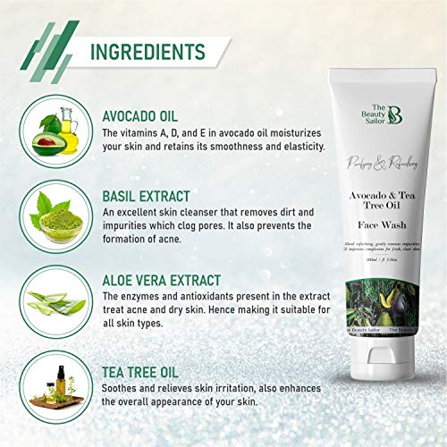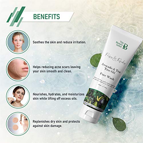 ✅ REPLENISHES THE SKIN – This skin rejuvenating face wash feeds the skin with everything that it needs and replenishes dry skin. This Avocado and Tea Tree Oil facewash provides your skin a youthful appearance and healthy skin.