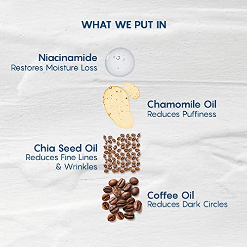 PUT NATURE TO WORK FOR YOU : Improve fine lines, wrinkles and puffiness with Coffee Oil, soothe with Organic Chamomile oil, reduce puffiness and relieve tired eyes with Green Tea, soften and condition skin with Shea Butter and Avocado Oil