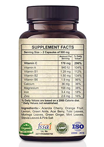 QUALITY & PURITY ASSURED: These Capsules are made in GMP, ISO, ORGANIC Certified facility to ensure Safety and Purity. Our Vitamin C Capsules are Vegan, non-GMO, gluten- and sugar-free, and contain no artificial colors or sweeteners.