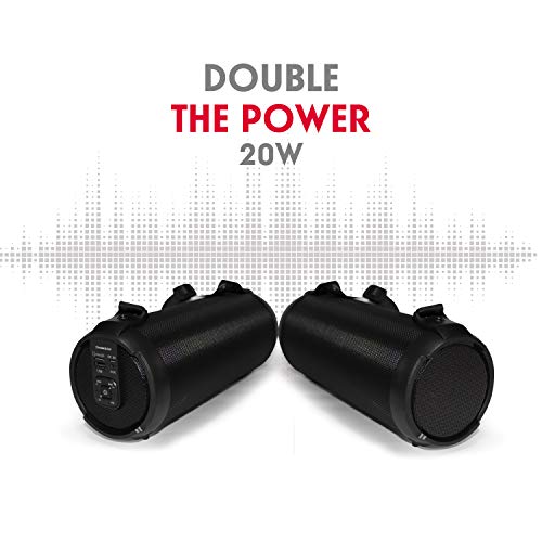 TRUE WIRELESS CONNECTIVITY (TWS). Now connect two Boomboxes together and double your fun. 10Watts becomes 20Watts. The music fills every space. And the bass gets twice the punch