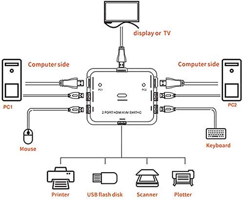 【Smart& multi-switch method】 Keyboard Control kvm hdmi kvm switch 2 port hdmi kvm usb switch with Hot-Plug that you can plug and unplug it without shut down the devices.easy to control felexable,hotkey control works perfect,Unique heat vent design,Working life-span Extended.